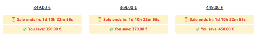 echo "<div class='flycart-countdown' data-endtime='{$formatted_end_time}'>⏳ Sale ends in: <span class='flycart-timer'></span></div>";